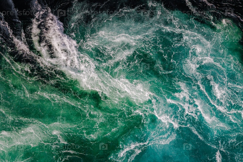 Голубые волны воды реки и моря встречаются друг с другом во время прилива и отлива