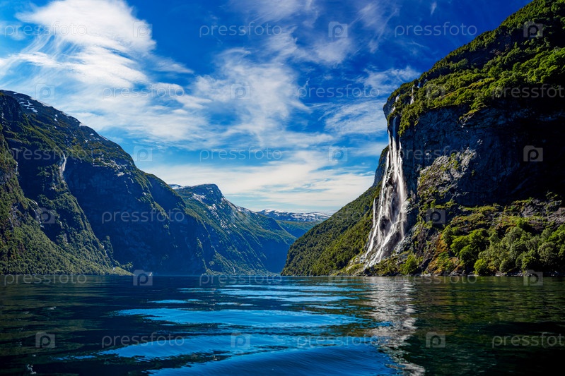 Гейрангер-фьорд, водопад Семь сестер. Красивая природа Норвегии природный ландшафт