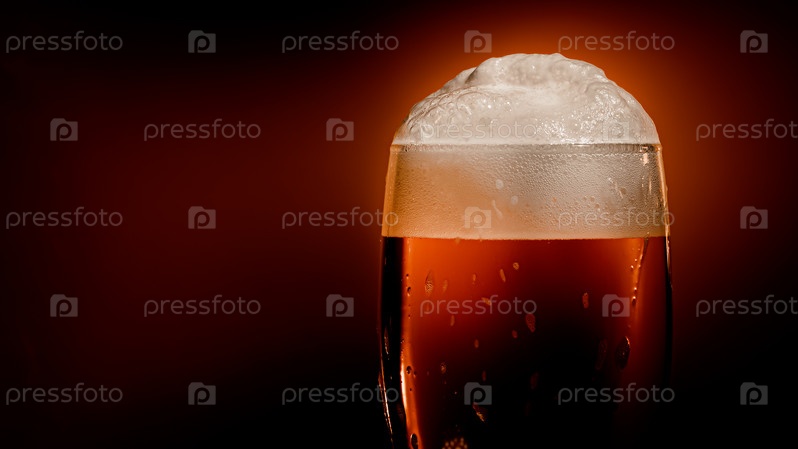 Светлое пиво оседает в бокале с белой шапкой пены