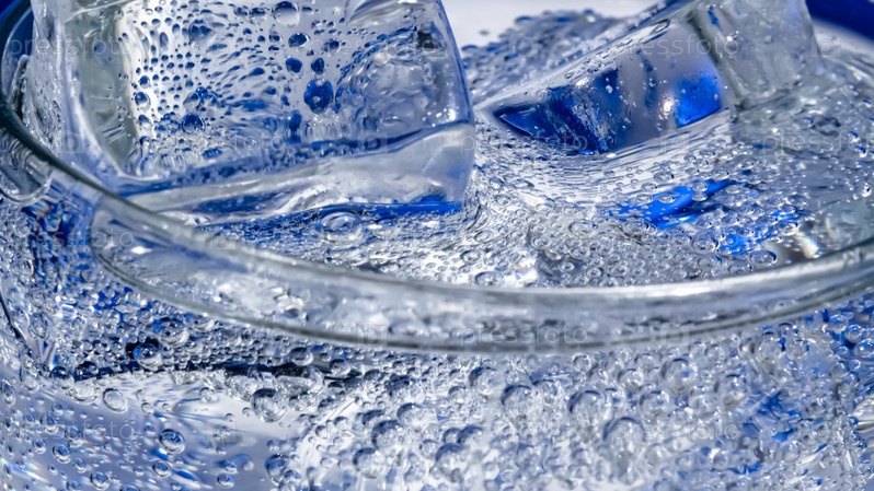 Стакан воды со льдом на темно-синем фоне