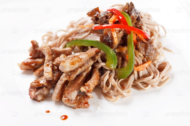 Мясо с лапшой и овощами