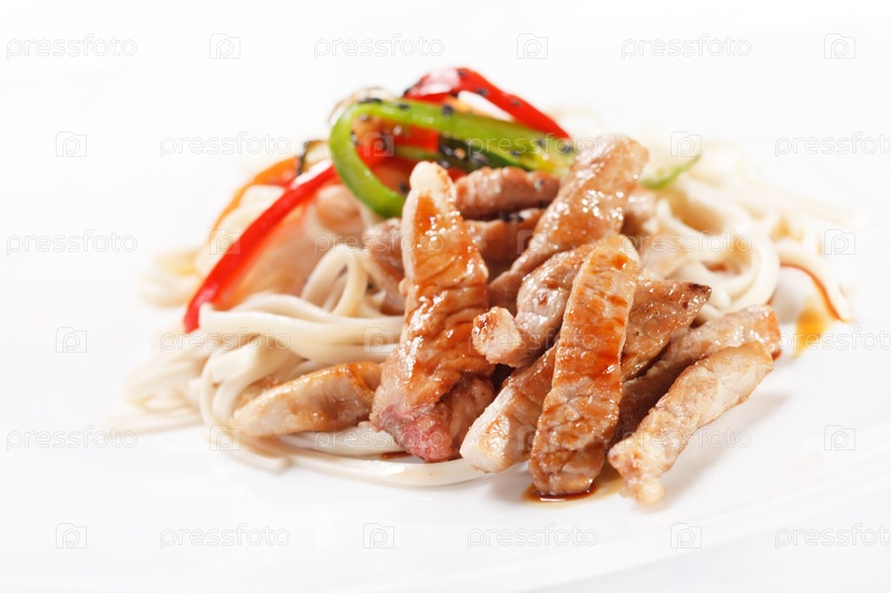 Мясо с лапшой и овощами