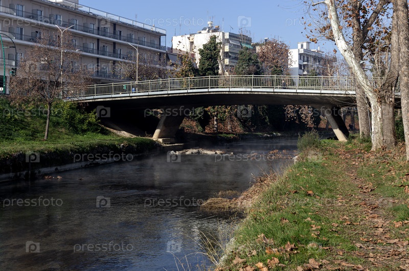 Вид на реку Литеос в Трикале (регион Фессалия, Греция)
