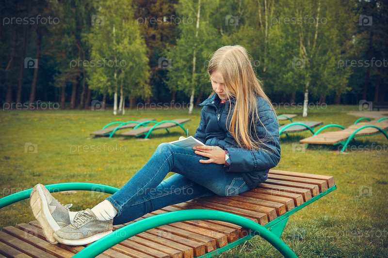 Девушка сидит на шезлонге и пишет письмо