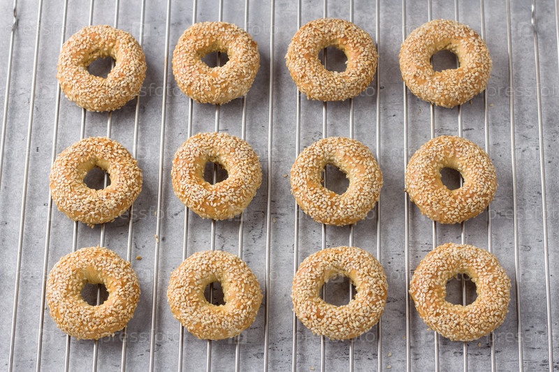 Греческое пасхальное печенье с кунжутом кулуракья или кулурья на решетке. Пошаговая инструкция. Сделай сам. Шаг 8. Выпекай в духовке и остуди на решетке