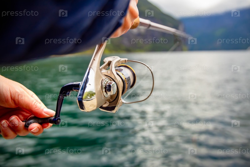 Женщина ловит рыбу на спиннинговую удочку в Норвегии