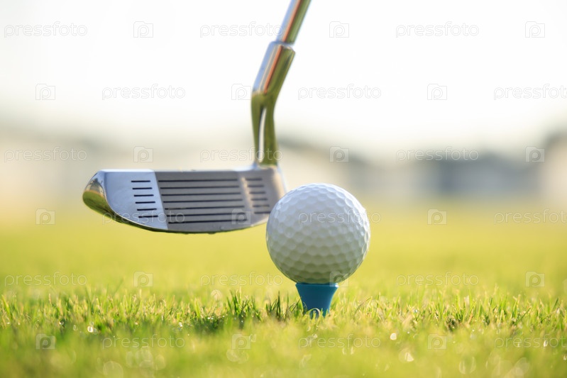 Мяч для гольфа на ти перед водителем