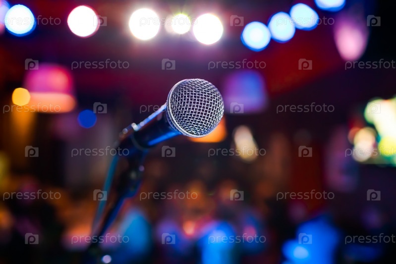 Микрофон на сцене на фоне зрительного зала