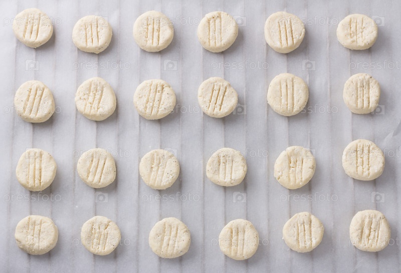 Ньокки из сырого творога на белом пергаменте, вид сверху. Этап приготовления