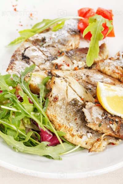 Рыбное филе на гриле с помидором и лимоном