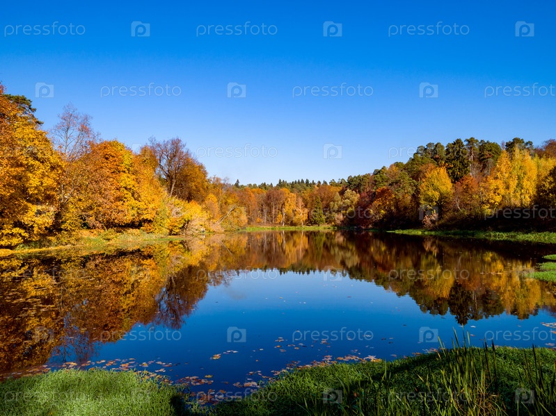 Красочный осенний лес на берегу озера
