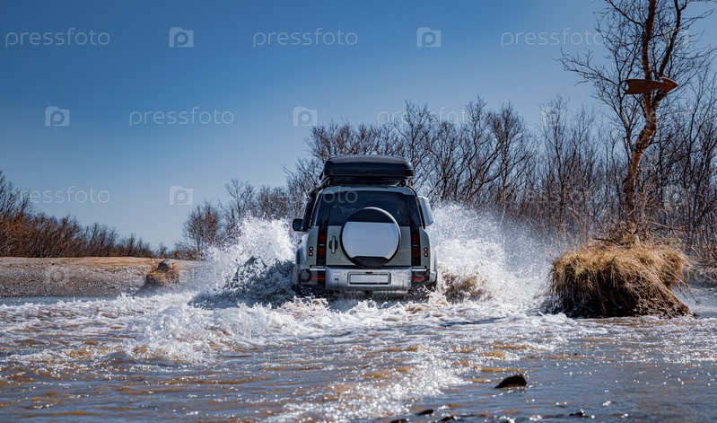 Внедорожные туристические поездки на автомобиле по бездорожью в горной местности. Экспедиционные путешествия и отдых, приключения в отдаленных районах