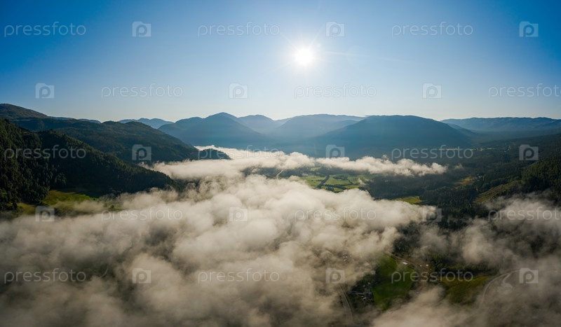 Вид с воздуха на прекрасную природу Норвегии над облаками