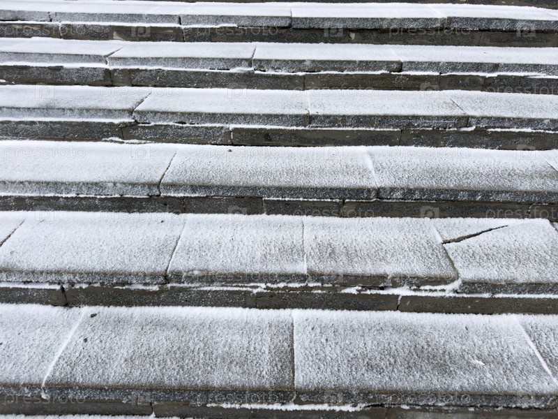Бетонные лестницы, покрытые снегом снаружи