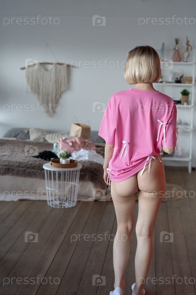 Молодая красивая женщина позирует в розовой футболке в студии
