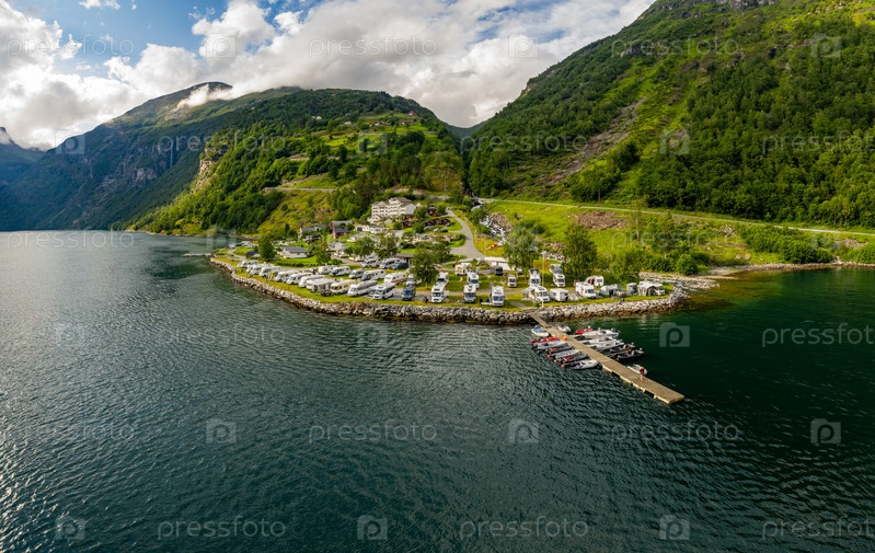 Прекрасная природа Норвегии Вид с воздуха на кемпинг для отдыха