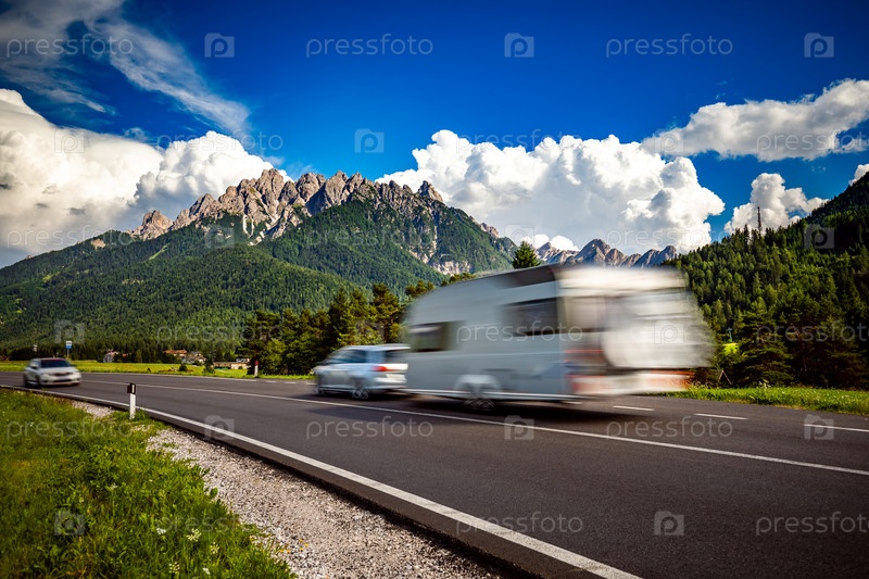 Семейный отпуск, поездка на отдых в автодоме, размытость изображения при движении каравана