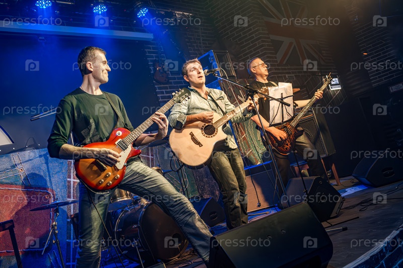 Группа выступает на сцене, рок-концерт в ночном клубе