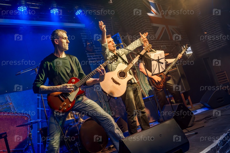 Группа выступает на сцене, рок-концерт в ночном клубе