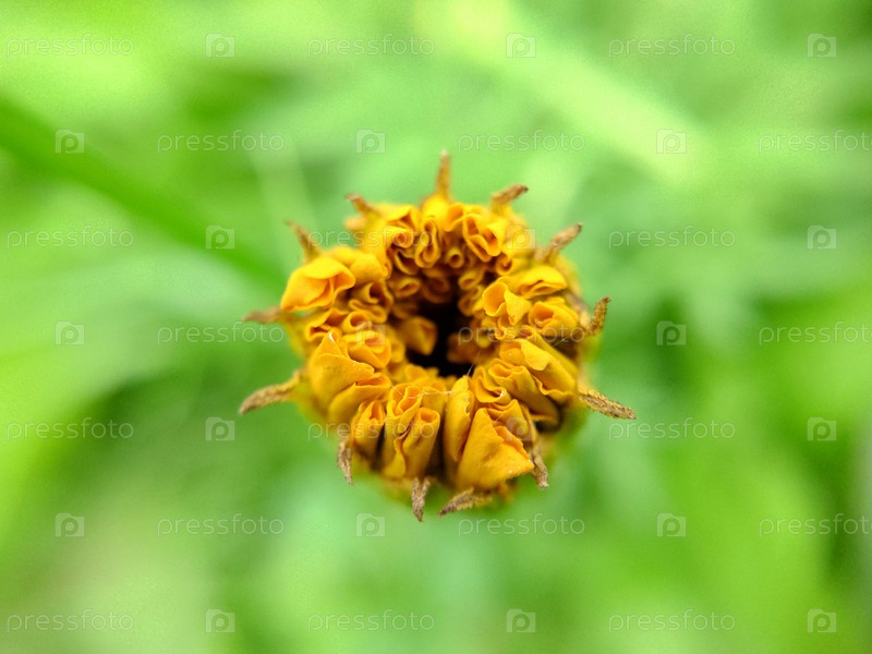 Нераскрывшийся бутон календулы на травянистом фоне — селективный фокус
