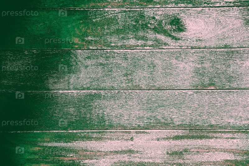 Крупный план выветренных деревянных досок с выцветшей зеленой краской, придающей им деревенский и старинный вид, фоновое изображение