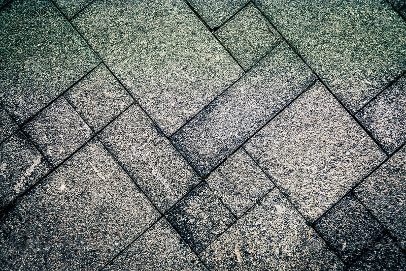 Серая бетонная плитка, уложенная в геометрическом узоре, создающая шероховатую и текстурированную поверхность, фоновое изображение