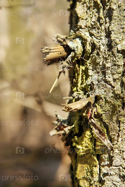 Ствол дерева, одиноко стоящего в лесу, покрытый ветками