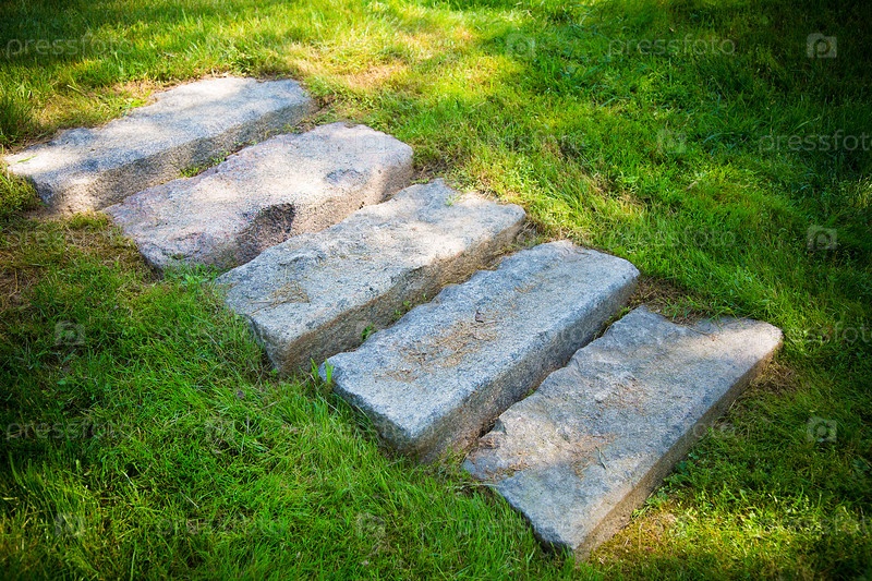 Каменные ступени, встроенные в траву, создают естественную садовую дорожку под солнечным светом