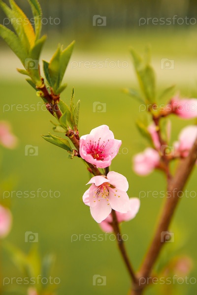 Цветение персика на улице крупным планом