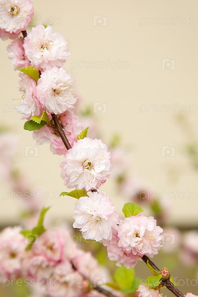 Весеннее цветение бледно-розовых цветов кустарникового миндаля