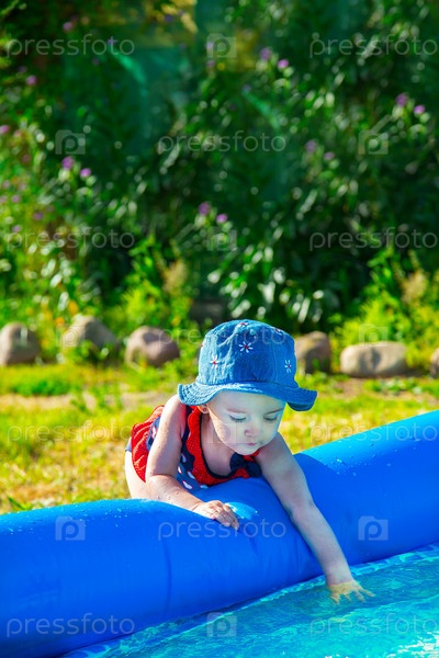 В прекрасный солнечный день радостный ребенок играет у бассейна, полностью отдаваясь летним развлечениям