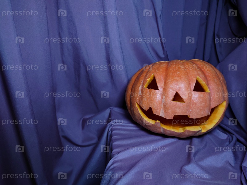 Улыбающаяся тыква на Хэллоуин на сиреневом фоне