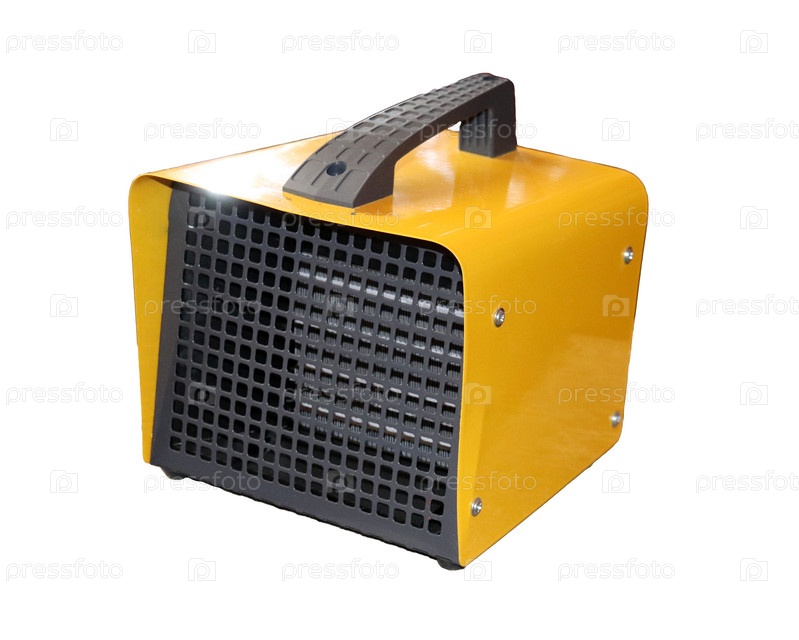 Желтая электрическая тепловая пушка на белом фоне - изолят