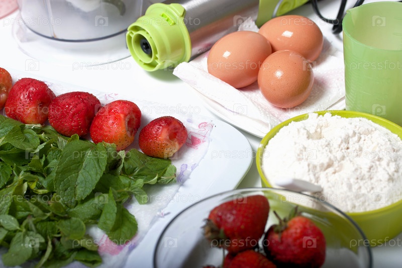 Рулет со шпинатом и мятой. С начинкой из клубники. Ингредиенты для приготовления