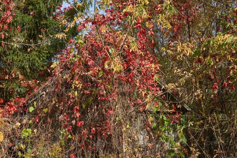 Дикий или девичий виноград заселяет заброшенные садовые участки. Осень