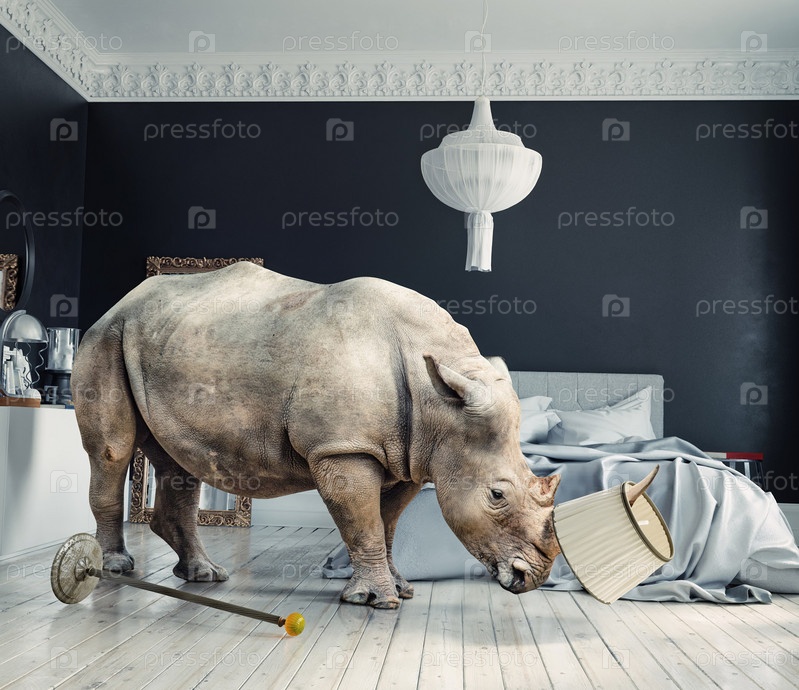 Дикий носорог в роскошной спальне