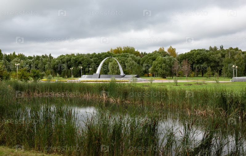 Стела в Омском парке Победы летом