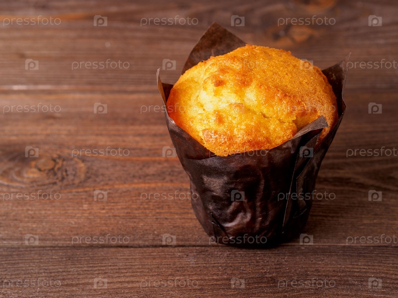 Сладкий вкусный кекс, на коричневом деревянном фоне