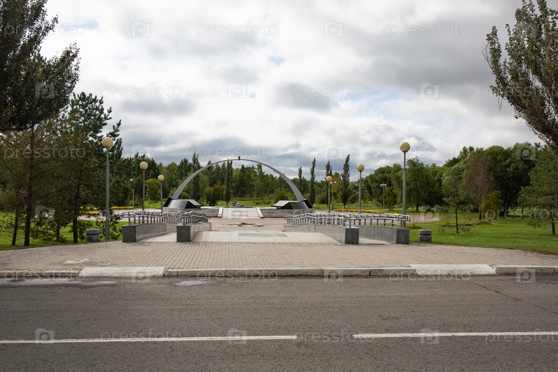 Стела в Омском парке Победы летом