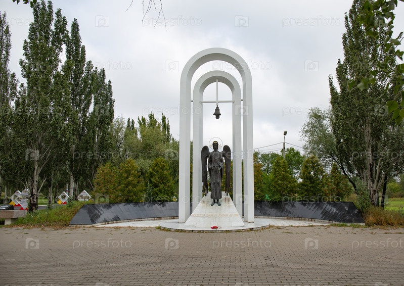 Памятник Ангелу-хранителю в Омском парке Победы летом