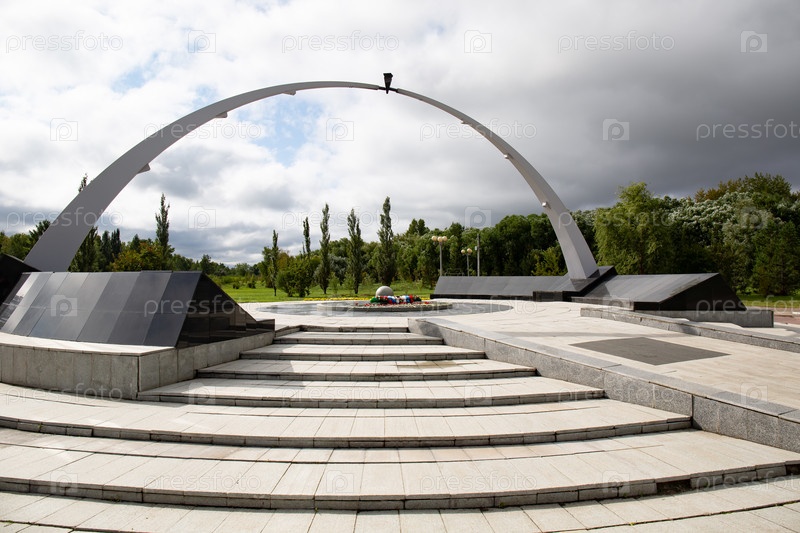 Стела в Омском парке Победы летом