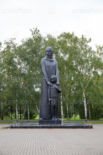 Скульптура матери и ребенка в парке Победы в Омске летом