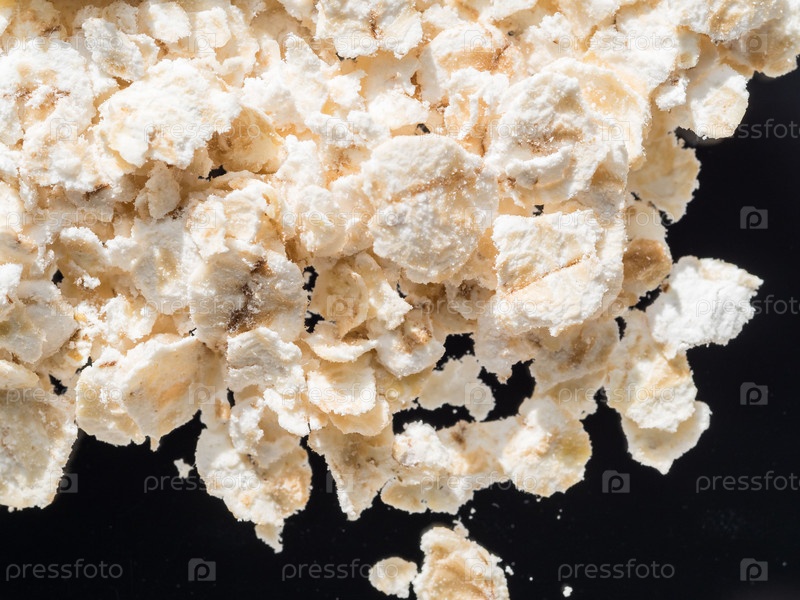 Сырые сухие зерна овсянки, крупный план, вид сверху