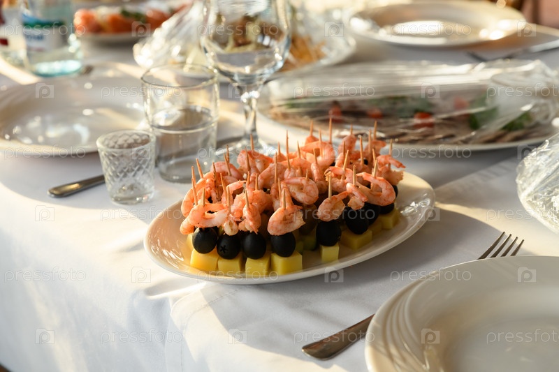 Канапе с сыром, оливками и креветками на праздничный стол