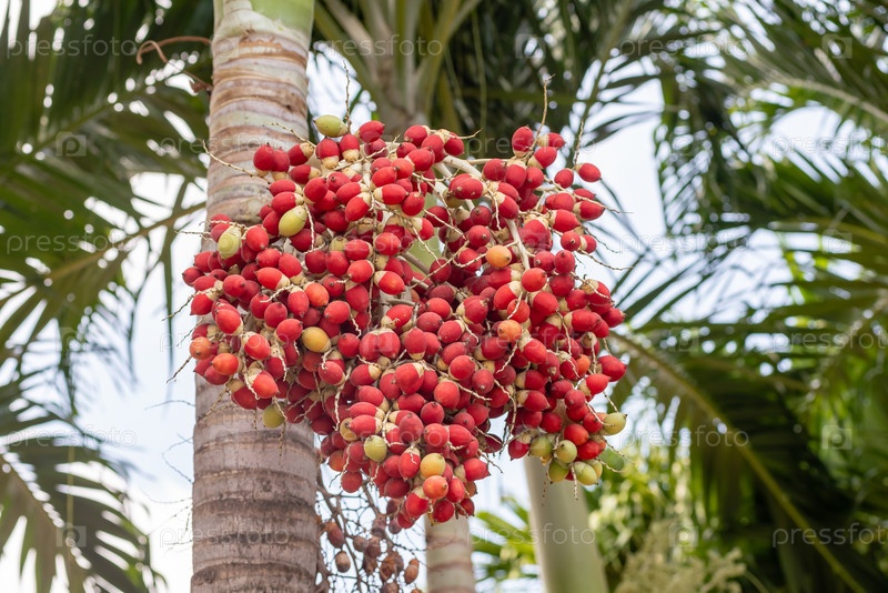 Красные тропические ягоды Плоды рождественской пальмы Манильская пальма - Adonidia Merrillii