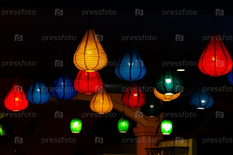 Бумажные потолочные светильники разных ярких цветов