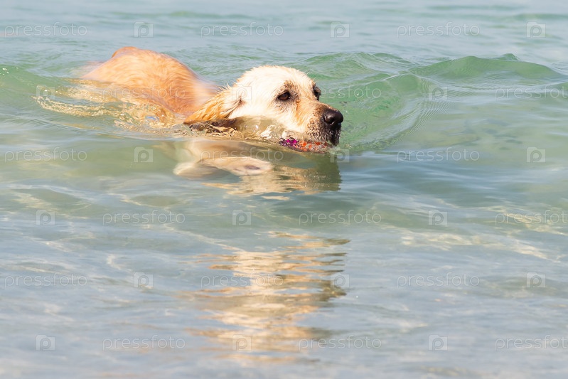 Собака породы лабрадор плавает в море
