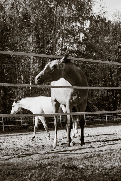 Две лошади за зобороч черно-белое