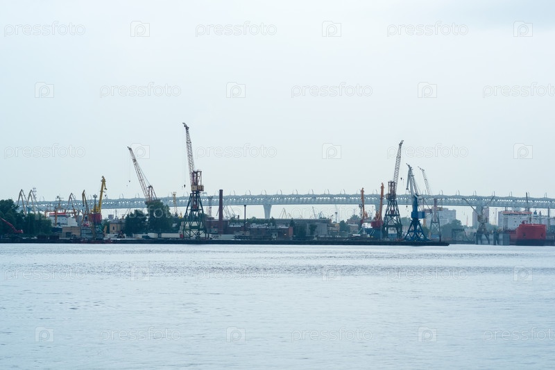 Промышленный пейзаж, грузовой порт в пасмурный день