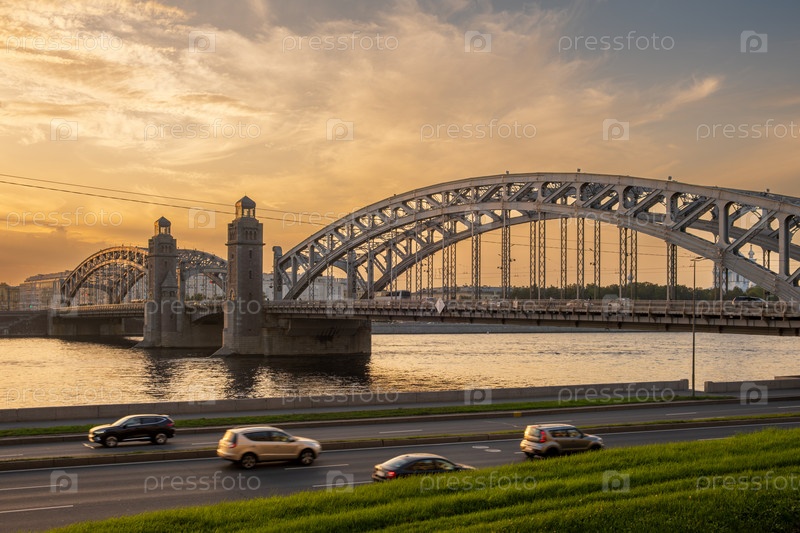 Санкт-Петербург, Россия - 14 сентября 2024 г. Вид на мост Петра Великого